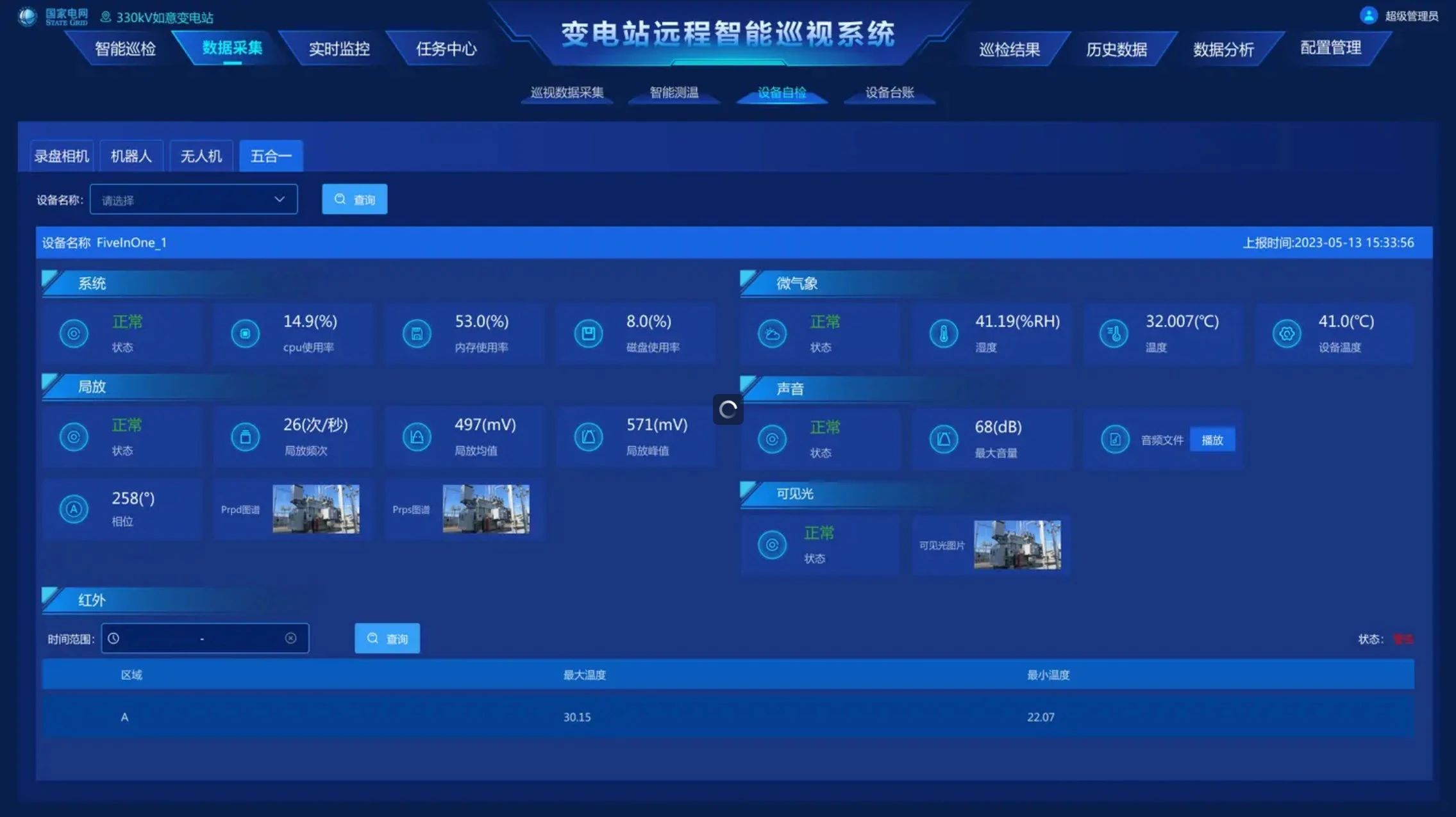 通過機(jī)器人系統(tǒng)、高清視頻系統(tǒng)、紅外在線系統(tǒng)、聲紋采集裝置等方式聯(lián)合采集巡視數(shù)據(jù),完成變電站全面運(yùn)行數(shù)據(jù)采集,構(gòu)建數(shù)字化變電站數(shù)據(jù)基礎(chǔ)。具備表計(jì)識(shí)別、設(shè)備外觀識(shí)別功能完成30多類電力設(shè)備狀態(tài)分析,20多類典型缺陷識(shí)別,有效輔助人工完成現(xiàn)場(chǎng)巡視工作。