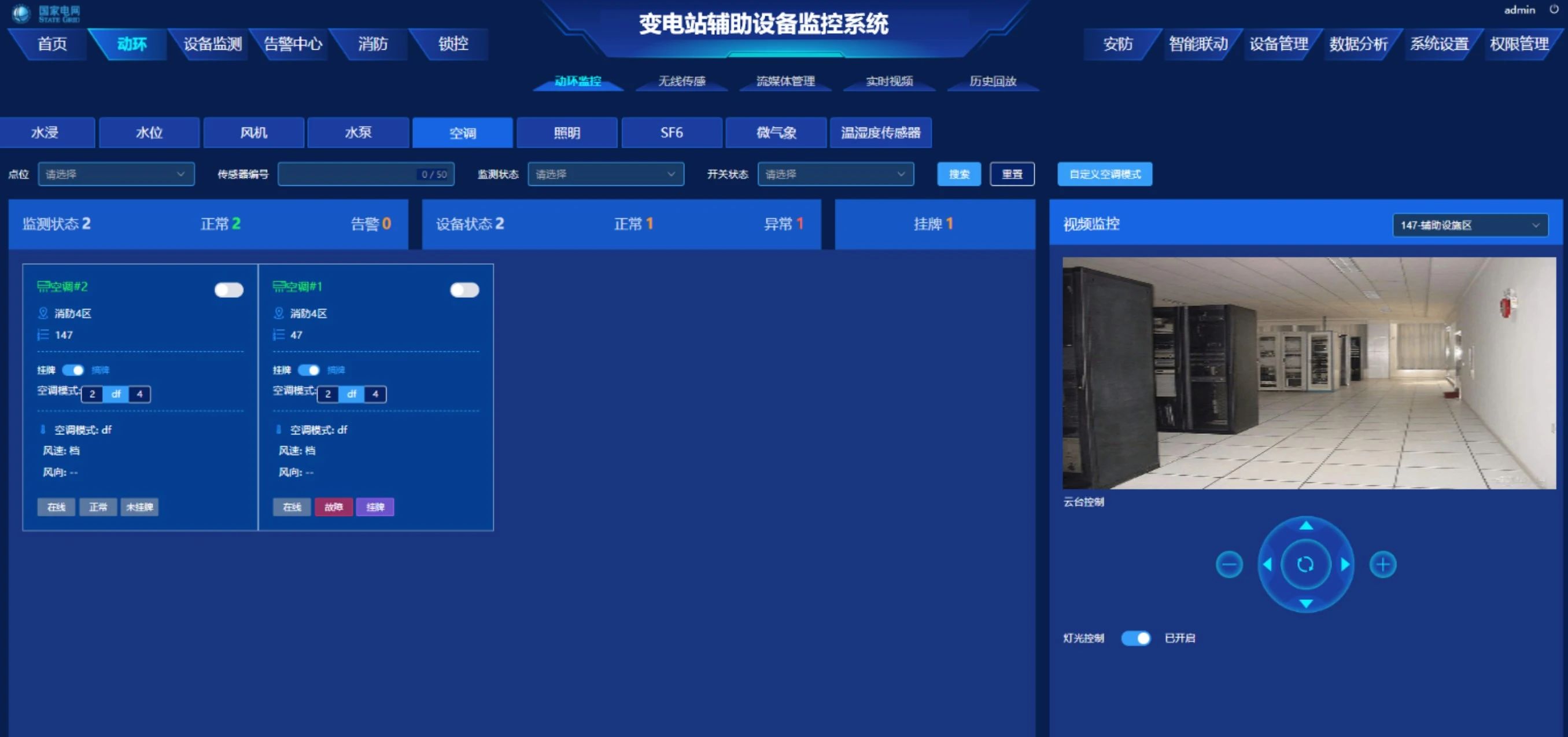 實(shí)時(shí)監(jiān)測(cè)SF? 、O?氣體濃度、對(duì)水泵、空調(diào)、水浸、風(fēng)機(jī)和照明等設(shè)備狀態(tài)與環(huán)境全面監(jiān)控,確保設(shè)備正常運(yùn)行,及時(shí)預(yù)警風(fēng)險(xiǎn),提升設(shè)備管理效率。