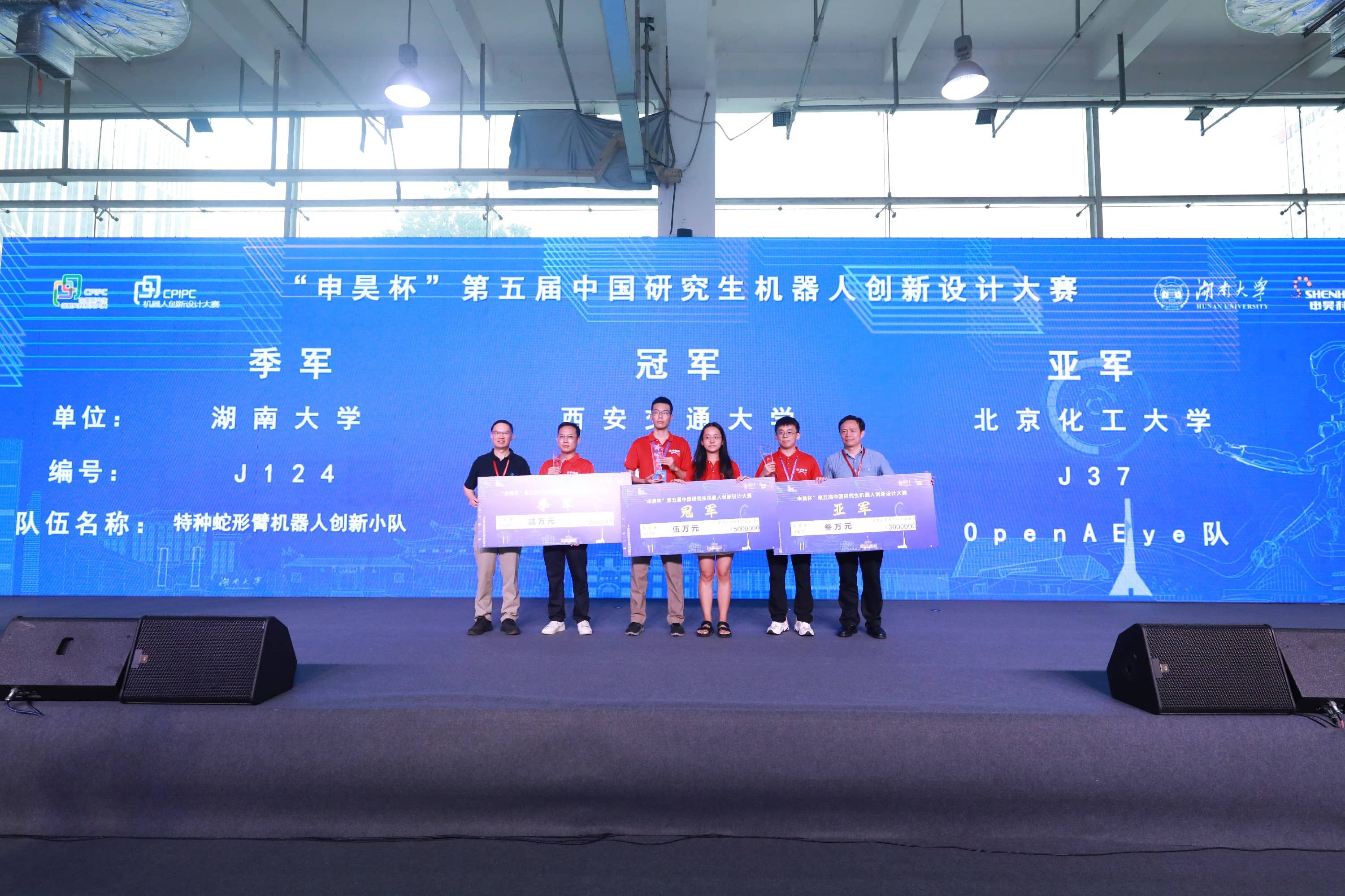 本屆大賽共收到來自近240所高校和科研院的1177支隊(duì)伍報(bào)名,經(jīng)初賽評審最終288支隊(duì)伍進(jìn)入決賽。經(jīng)過兩天激烈的角逐,最終決出冠、亞、季軍各1項(xiàng),其他一等獎(jiǎng)25項(xiàng),二等獎(jiǎng)86項(xiàng),三等獎(jiǎng)170項(xiàng)。其中來自西安交通大學(xué)的“穩(wěn)如泰山隊(duì)”脫穎而出,獲得本屆“申昊杯”大賽的冠軍,北京化工大學(xué)“OpenAEye隊(duì)”榮獲亞軍,湖南大學(xué)“特種蛇形臂機(jī)器人創(chuàng)新小隊(duì)”榮獲季軍。