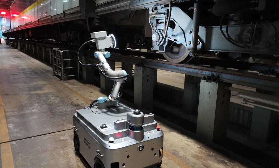 列車車底檢測機器人采用輪式運動平臺組合機械臂、視覺系統的方式,運行于列車檢修地溝中,代替人工完成列車車底、車側外觀的檢測任務,解決傳統人工檢測遇到的現場環境艱苦、勞動強度大、受人員主觀因素影響等問題,從而降低檢修人員工作強度、提升檢修質量,及時全面消除列車運行安全隱患。